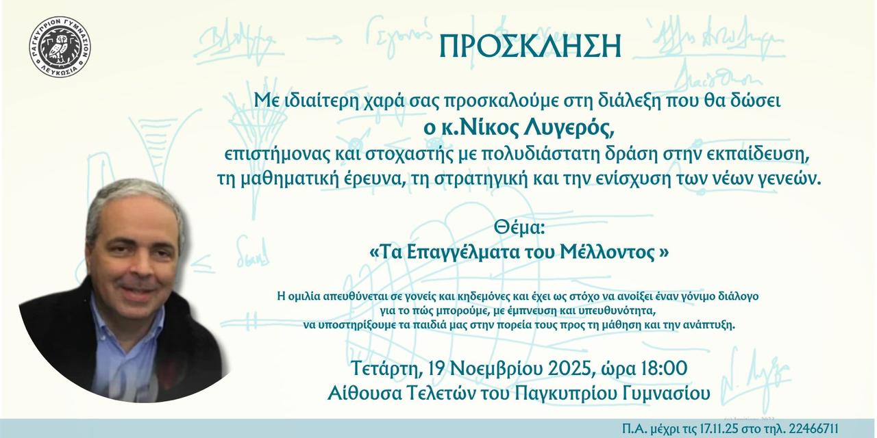 Διάλεξη Ν. Λυγερού με θέμα: Το επάγγελμα του μέλλοντος.
